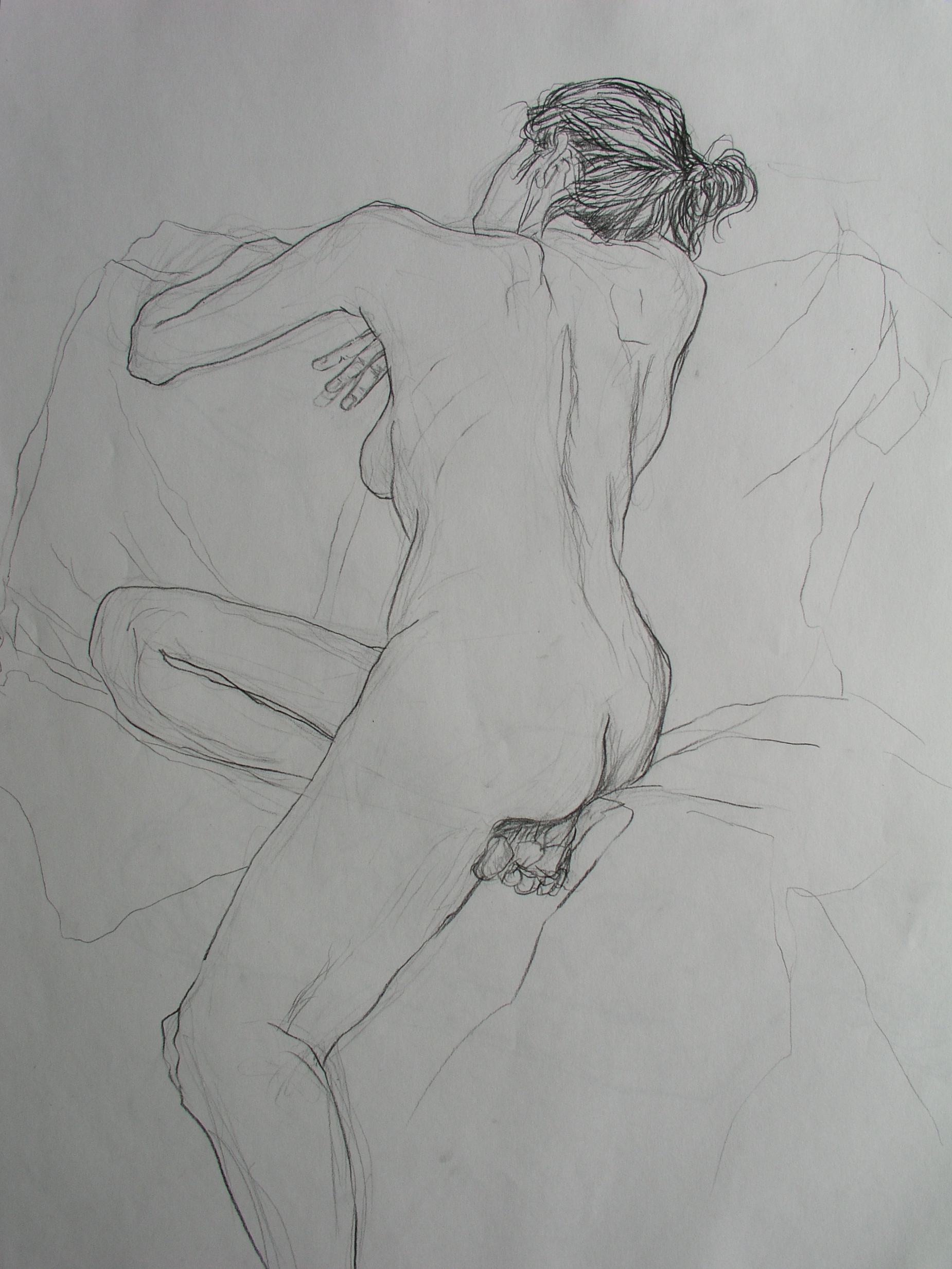 It’s been a long time since I’ve worked with figures..There was a “couple of years” period where I was drawing from the model 3 times a week. I had stacks of drawings. I lost all my figurative works on paper in a studio flood 3 years a ago (that’s another story). Now, drawing again it’s strangely liberating to be working without a whole stack of visual history in the flat files.